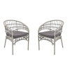 Эти садовые кресла изготовлены из высококачественного искусственного ротанга, стали и полиэстера, что обеспечивает их прочность, долговечность и легкость в уходе. Мебель подходит для использования как в домашних условиях, так и для уличного применения, благодаря своей стойкости к погодным условиям.