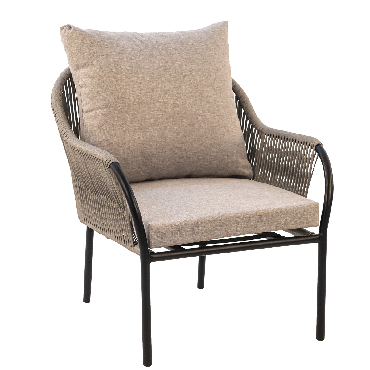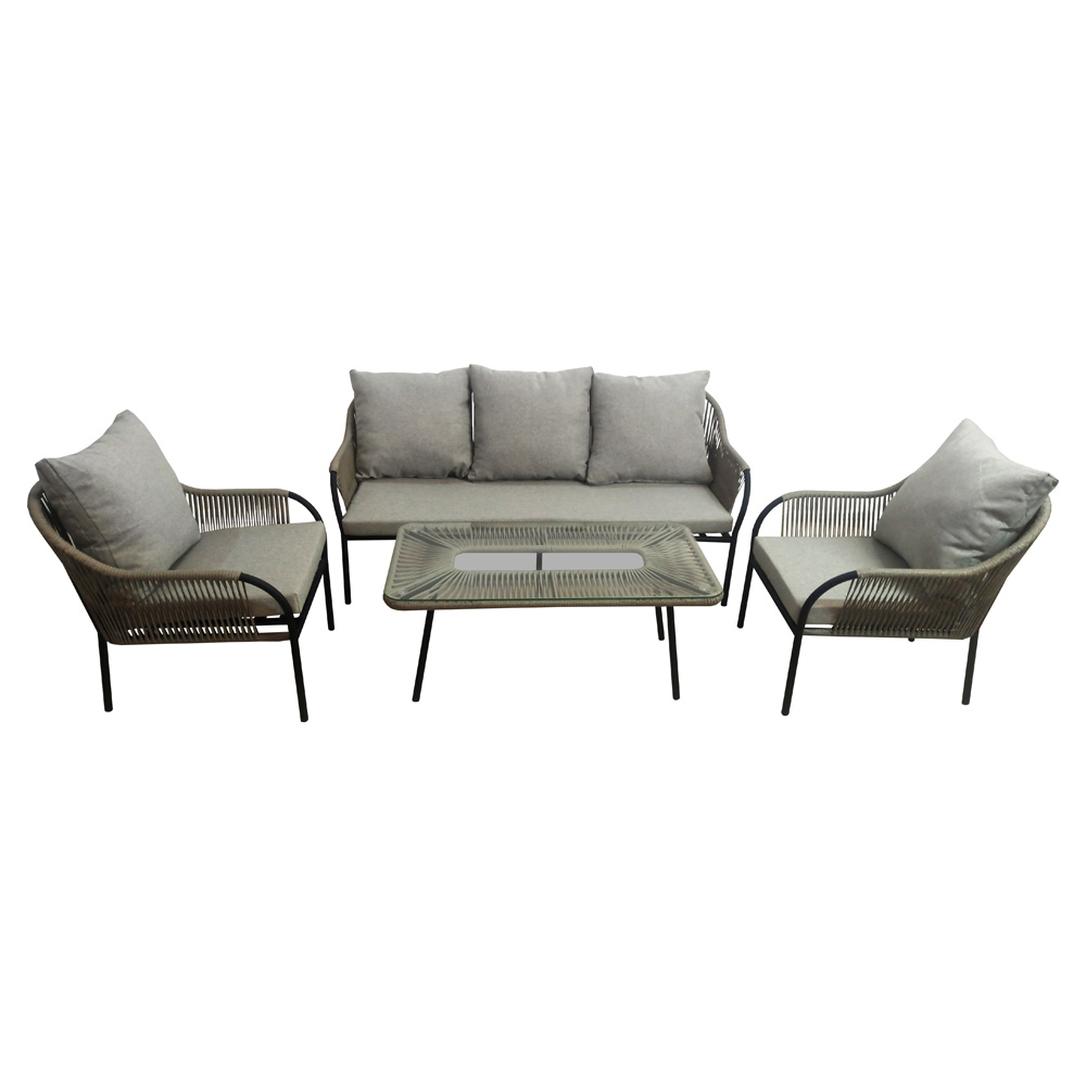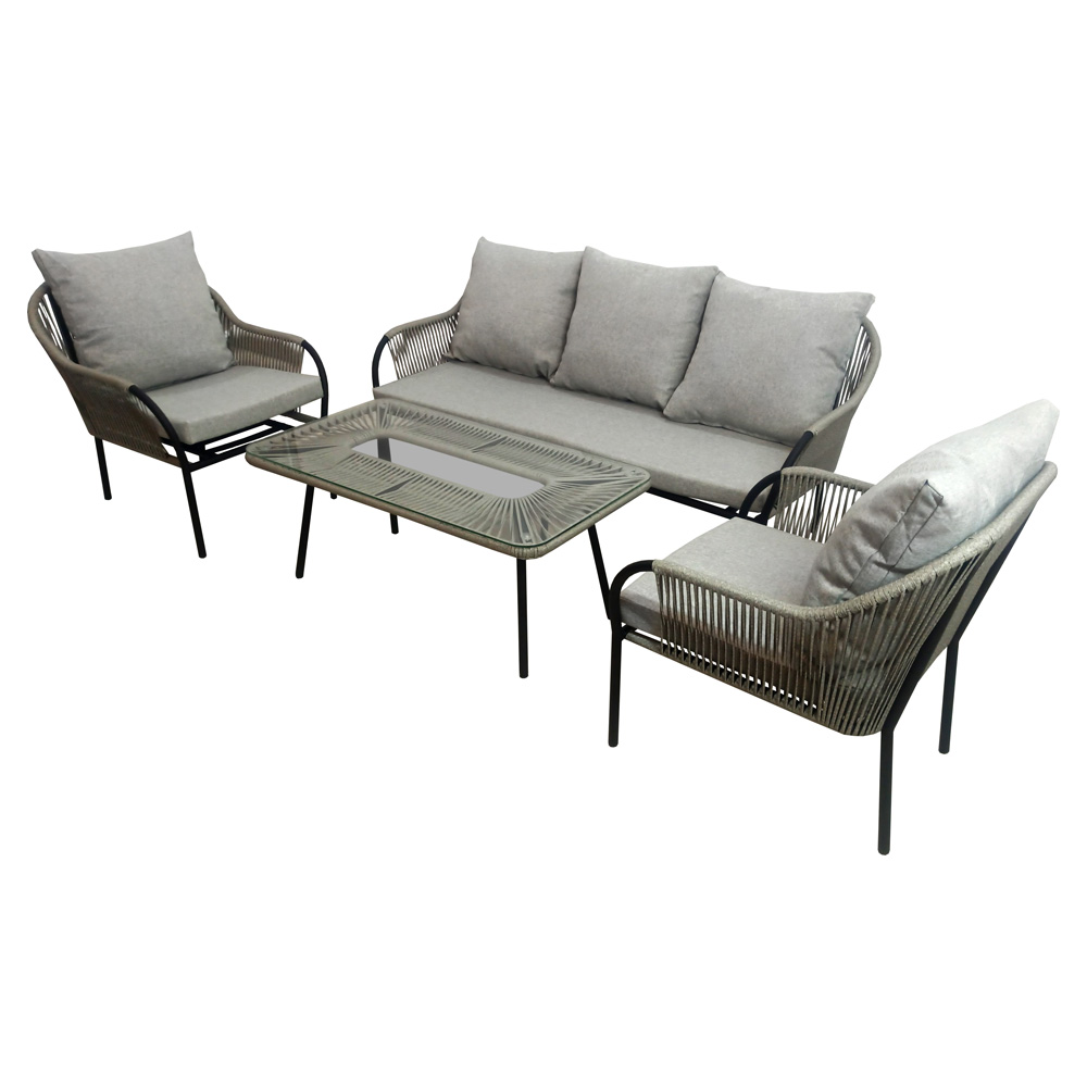 Удобная посадка и комплектация всех элементов - диваны можно вставить друг в друга, таким же образом можно поступить с креслами. Лента искусственного ротанга напоминает шнур.