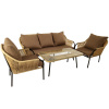 Удобная посадка и комплектация всех элементов - диваны можно вставить друг в друга, таким же образом можно поступить с креслами. Лента искусственного ротанга напоминает шнур.