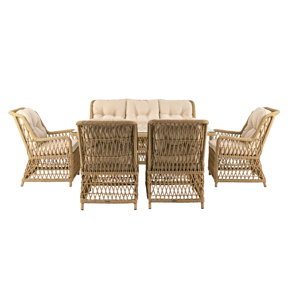 Эта мебель сплетена сложным узором - красивые переплетения в виде кос. Не каждый плетельщик это может, у нас данную серию плетет самая опытная бригада.