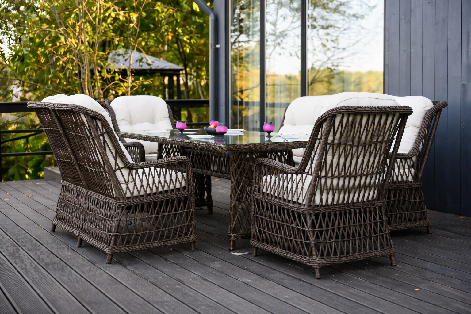 Если говорить предметно, искусственный материал выигрывает там, где важны долговечность, износостойкость и спокойная эксплуатация. Он лучше выдерживает внешнее воздействие, меньше склонен выцветать на солнце, реже получает повреждение из-за сырости и проще переносит перепады температуры, если мебель стоит на открытой террасе или в полуоткрытом пространстве.